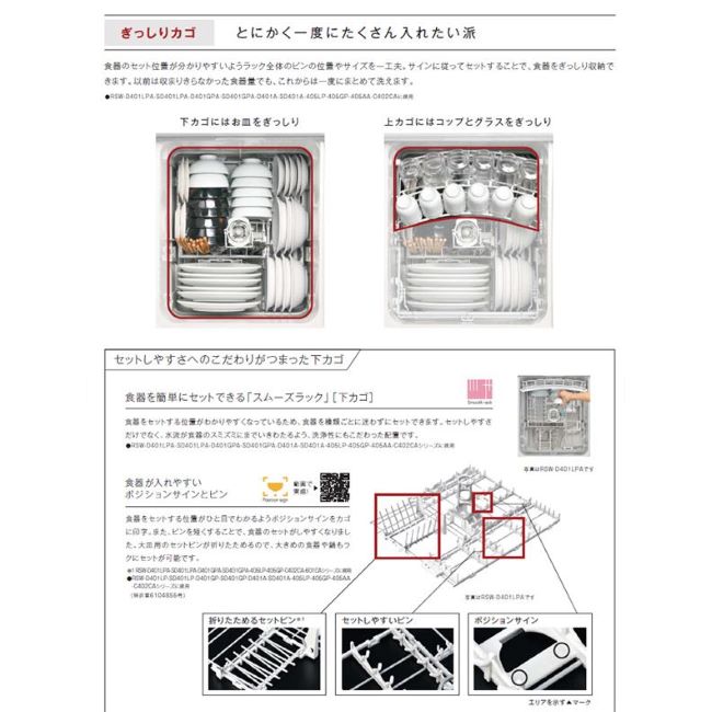 | 運転コース | 標準 重曹 念入り 夜エコ 予約 サイレント 乾燥 クリーンキープ 庫内洗浄 | 運転時間目安(標準) | 給湯60℃:約124分 給湯20℃:約152分 |