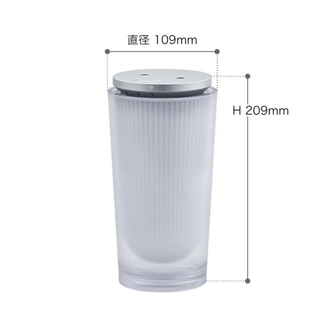 【商品仕様】【ハードウェア仕様】電源:DC 5V電源コネクタ:USB Type C霧化方式:超音波メッシュ式振動子x 2ch操作ボタン:タクトSW x 1 (運転モード切替)インジケータ:LED(White)×3 :運転モード本体:RGB LEDセンサ:ー操作音:ありWiFi:ーBluetooth:搭載バッテリ:未搭載充電回路:未搭載異常検出:上部ユニット脱着検出霧化器交換:上部ユニットの交換で対応可能対応液剤:アロマ(精油100%)※別売本体素材:ABS樹脂・アルミ 他【製品仕様・付属品】運転モード:入眠/起床、パワーナップ、メディテーション消費電流:3A外形寸法:直径109mm×高さ209mm質量:780gUSBケーブル長:0.9m液剤ボトル容量:約20ml付属品:取扱説明書+保証書、USB ケーブル、AC アダプタ