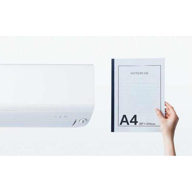 | 室内機サイズ | 幅799x高さ255x奥行338(343)mm ()内の寸法は、据付板を付けたときの寸法です。 | 室外機サイズ | 幅800(+62)x高さ630x奥行285(+60)mm ()内の寸法は、サービスパネルおよび脚部の突出し寸法です。 |