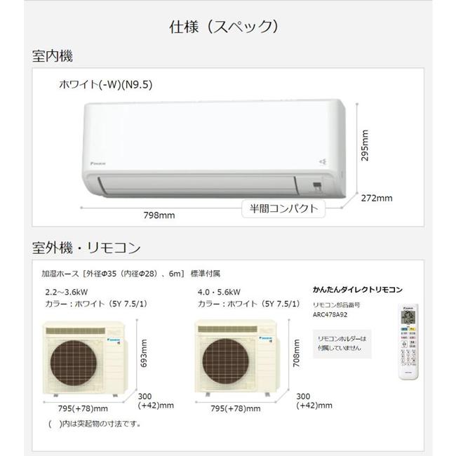 室内機サイズ幅798x高さ295x奥行272mm室外機サイズ幅795(+78)x高さ708x奥行300(+42)mm