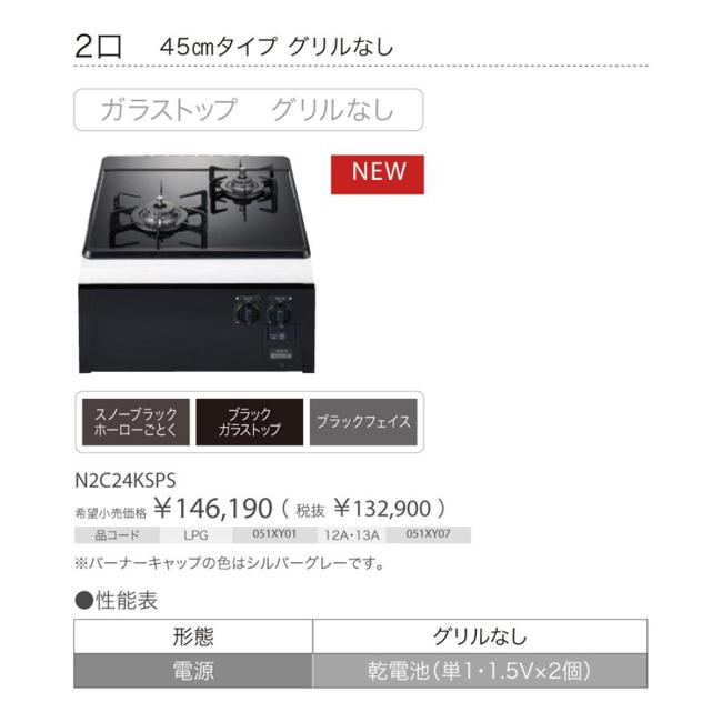 | 強バーナー位置 | 左 | コンロ口数 | 2 口 |
