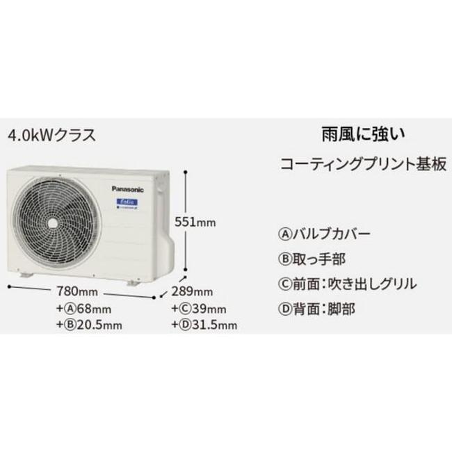 | 室内機サイズ | 幅790x高さ249x奥行340mm | 室外機サイズ | 幅780x高さ551x奥行289mm |