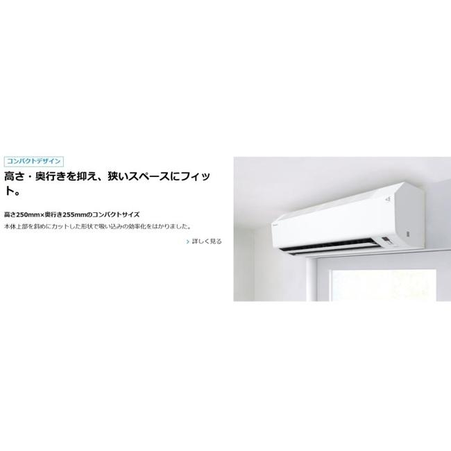 | 室内機サイズ | 幅798x高さ250x奥行255mm | 室外機サイズ | 幅675(+65)x高さ550x奥行284(+42)mm ()内は突起物の寸法です。 |