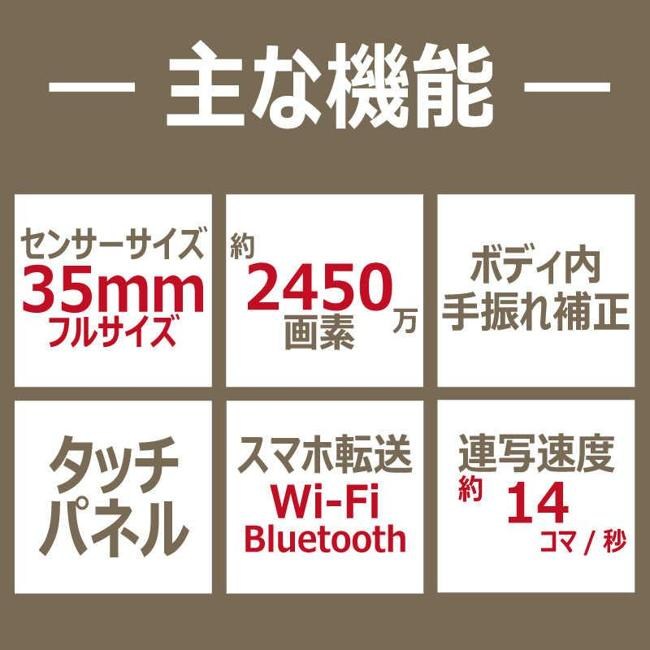 | 画素数 | 2528万画素(総画素) 2450万画素(有効画素) | 撮像素子 | フルサイズ 35.9mm×23.9mm CMOS |