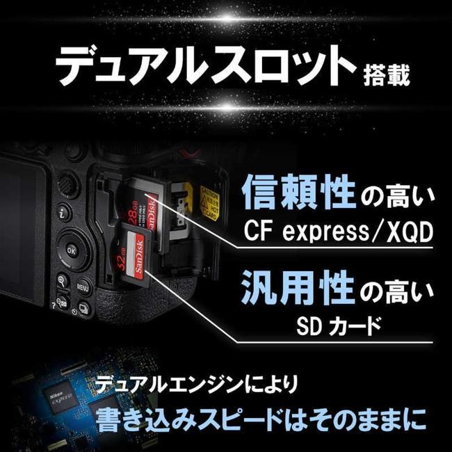 | 記録メディア | XQDカード CFexpressカードTypeB SDカード SDHCカード SDXCカード | スロット | ダブルスロット XQDカード・CFexpressカードTypeB/SDカード |