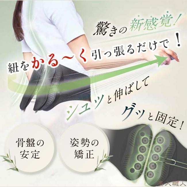腰が痛い、姿勢が悪い、という悩みをはじめ、腰まわりが緩んできた、ぽっこりお腹が気になる…など引きも切らない腰まわり事情を一気に解決してくれる話題のアイテムです。