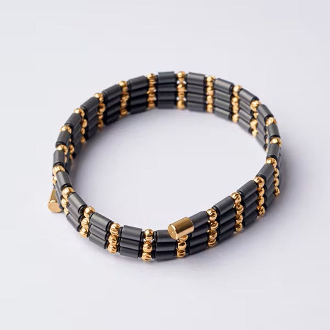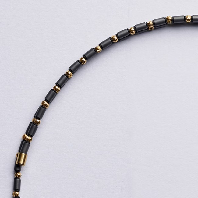 フェライト永久磁石とビーズのコントラストが際立つデザイン。ラグジュアリーな雰囲気が、自信をさらに高め、ワンランク上の存在感を引き出します。