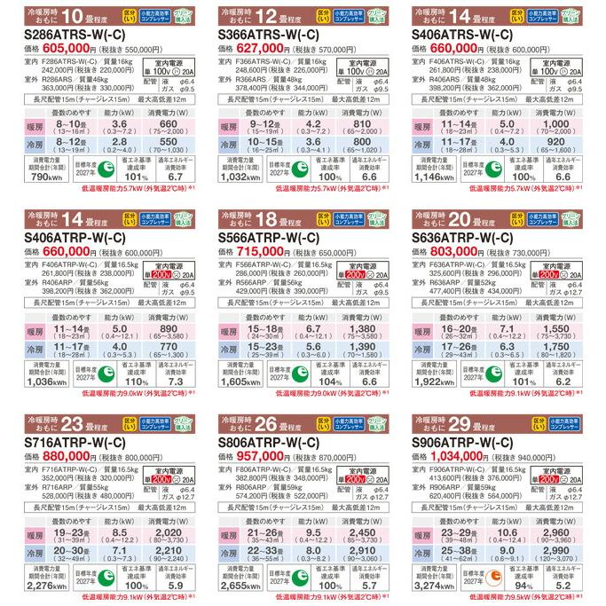 | 低温暖房能力 | 9 kW | 暖房消費電力 | 890W |