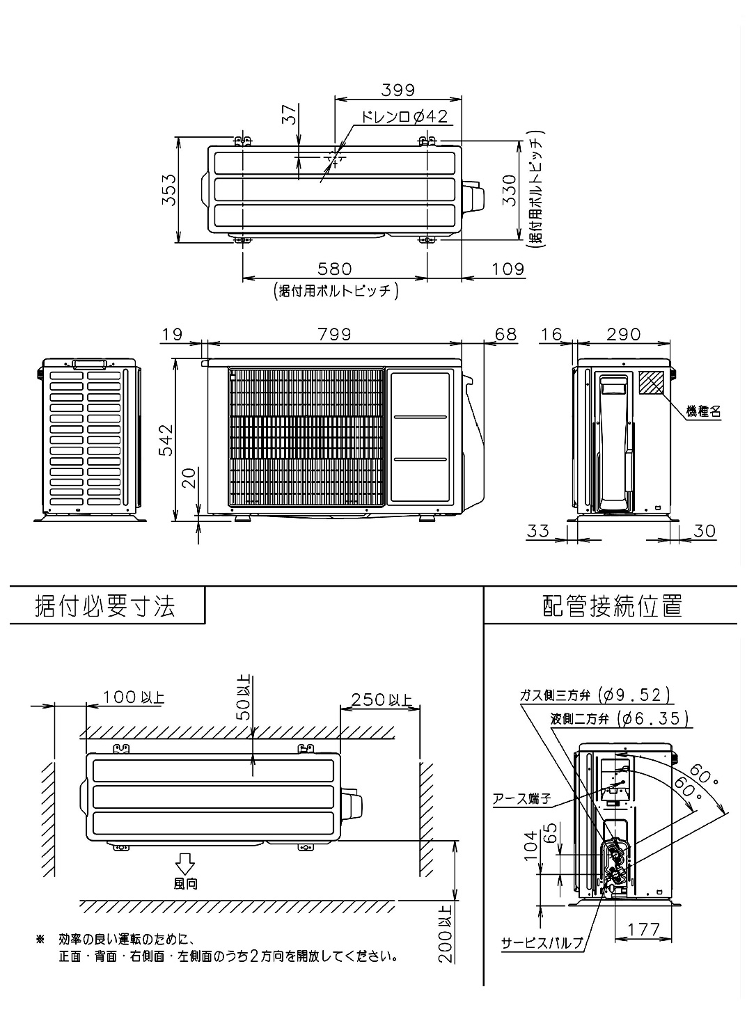 標準工事内容は商品梱包の開梱、取り付け工事、被覆銅管、ドレンホースとも4mまで材料込みとなっております。