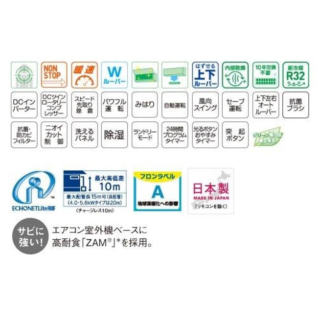| タイプ | 壁掛け | 畳数目安 | おもに10畳用 |