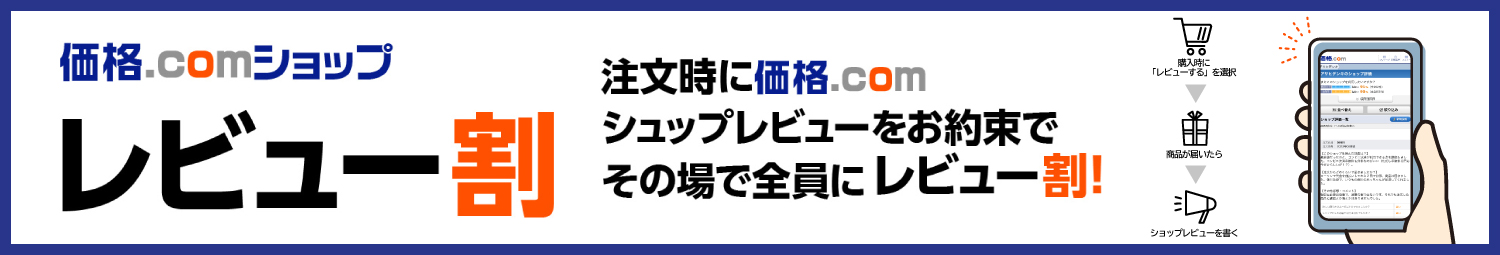 価格コム内のショップ評価を頂ける方は一部商品金額をキャッシュバック中